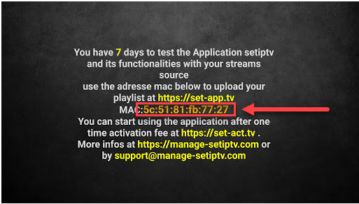 - Locate MAC Address: Upon completion of installation, launch the SET-IPTV application to find your unique MAC address displayed on the screen.