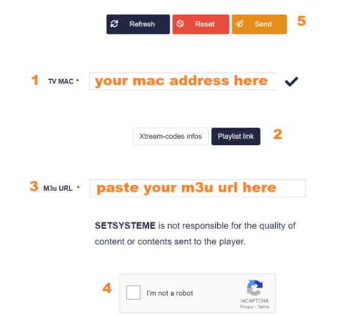- Visit Setup Page: Navigate to the SET-IPTV Setup Page using the provided link ” https://setsysteme.com/set.app ” and enter your MAC address in the designated field.